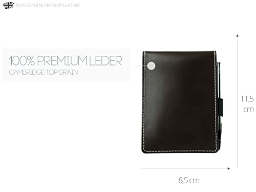 DELMON VARONE - Blocco note personalizzabile in DIN A7 in pelle Cambridge Top Grain marrone, comprendente mini penna a sfera, passante per penna e tasca (Blocco sfoderato)