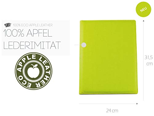 DELMON VARONE - Cartella Portadocumenti A4 in pelle di mela personalizzabile verde - Organizer Conferenza con blocco note, porta-penne e tasche portaoggetti - Custodia Organizzatore per documenti