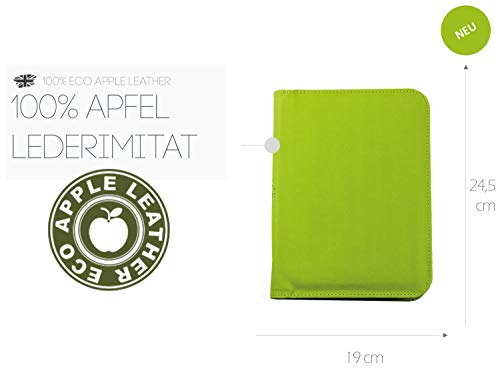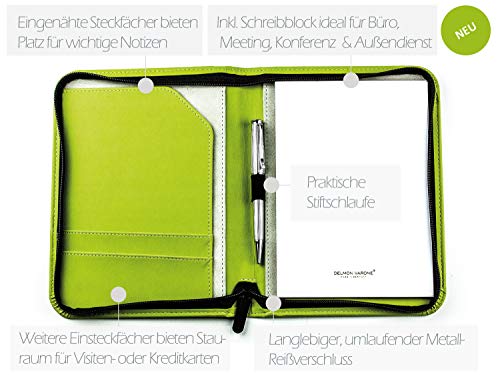 DELMON VARONE - Cartella Portadocumenti A5 pelle di mela personalizzabile verde - Valigetta Conferenza con blocco note, porta-penne e tasche portaoggetti - Custodia Organizzatore per documenti con zip