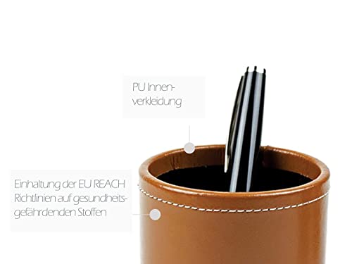 DELMON VARONE - Coppetta per matite in pelle premium Cambridge Top Grain marrone, portapenne con rivestimento interno in PU e lato inferiore in pile antiscivolo per scrivania e ufficio