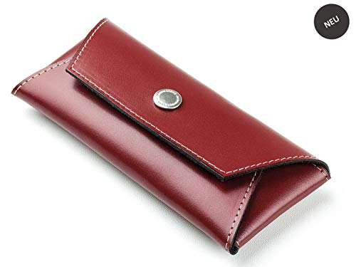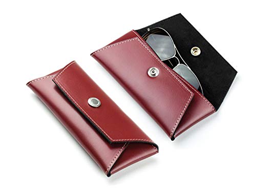 DELMON VARONE - Custodia per occhiali personalizzabile in pelle rosso - Astuccio per donna e uomo (morbida etui) - Custodie per occhiali da lettura, da sole e da tutti i giorni (personalizzata)
