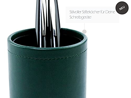 DELMON VARONE - Portapenne in ecopelle vegana verde - Portapenne con rivestimento interno in PU e parte inferiore in tessuto non tessuto antiscivolo - Design rotondo per scrivania e ufficio elegante