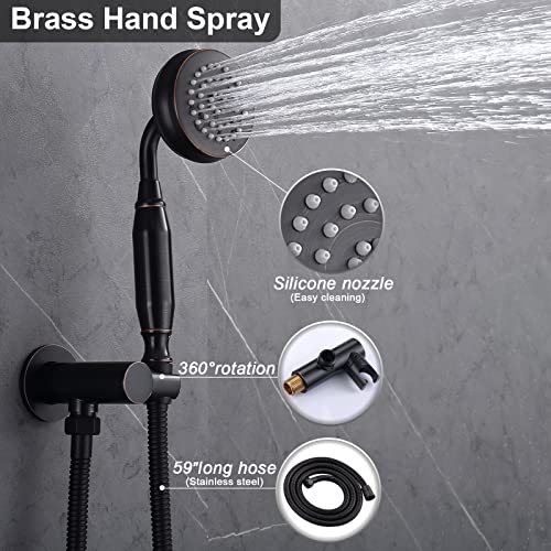 Delnet Set di miscelatore doccia antico in ottone nascosto vintage 8 pollici a parete soffione doccia a pioggia con set di rubinetti doccia completo, bronzo lucidato a olio