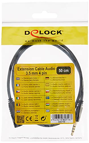 Delock cable de audio jack 3,5mm - 3,5mm m/h 0.50m 4pin