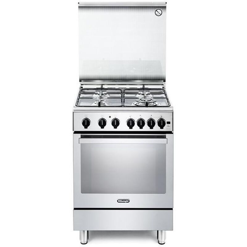 DeLonghi PGVX 64. Tipo di prodotto: Piano cottura, Colore del prodotto: Acciaio inossidabile, Tipo di controllo: Manopola. Tipo di piano cottura: Gas, Numero totale elementi piano cottura: 4 Fornello(i), Tipo di superficie superiore: Acciaio inossidabile. Dimensione del forno: Media, Sorgente di alimentazione del forno: Elettrico/Gas, Capacità netta del forno: 61 L. Regolazione altezza: 5 cm. Classe efficienza energetica: A, Consumo energetico (convenzionale): 1,47 kWh, Consumo energetico (convezione forzata): 1,58 kWh Nuova cucina con estetica inox che tende al design e alle prestazioni. ottima compagna nella cottura di tutti i giorni per le persone con carattere, che esigono molto e cercano affidabilità e durevolezza. Piano e forno da 60 cm a gas ventilato, perfetto per cuocere carne e pesce nel migliore dei modi, ben cotti ma morbidi e sugosi. Disponibili in diversi colori, con piano inox configurato per il posizionamento di grandi pentole, che ha 4 fuochi incluso un potente tripla