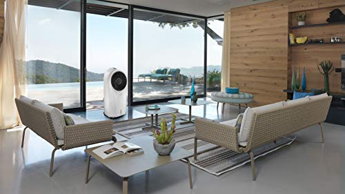 DeLonghi - EV250.BK, Climatizzatore evaporativo con ionizzatore, 6 ore di autonomia, protezione IPX4, display LED e telecomando, 55 W, 4,5 litri, 53 dB, bianco