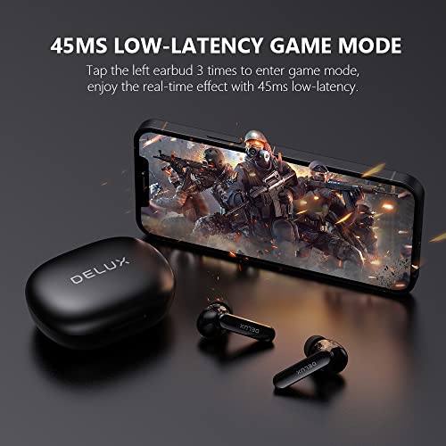 ♛ 【Modalità a bassa latenza e tecnologia di accoppiamento rapido】 Modalità a bassa latenza per i giochi e solo bisogno di raccogliere gli auricolari wireless, e verranno accesi e accoppiati tra loro, quindi fare clic su "DELUX DT5" dall'elenco Bluetooth per connessione. Dopo il primo utilizzo, puoi semplicemente aprire la custodia di ricarica e puoi accoppiare automaticamente i dispositivi Bluetooth senza problemi. Funzionamento molto semplice adatto a tutte le età.