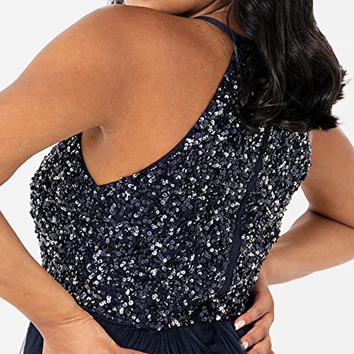 Maya Deluxe Maxi Abito da Donna da Damigella d'Onore con Scollo all'Americana e Paillettes Impreziosito da Ballo di fine Anno Vestito, Marina Militare, 46