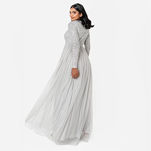 Maya Deluxe Abito Lungo da Donna Maya Impreziosito da Maniche Lunghe da Damigella d'Onore Vestito, Grigio Chiaro, 34