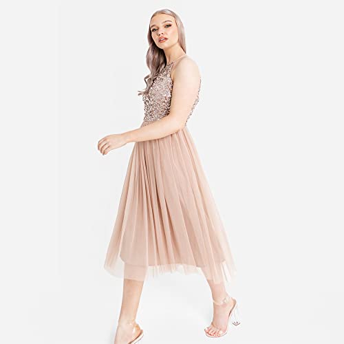 Maya Deluxe Abito Longuette con Scollo all'Americana Vestito per Damigella d'Onore, Tortora Blush, 52 Donna