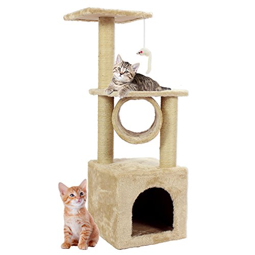 COZY PET Deluxe Albero del Gatto, 12 Modelli, Disponibile in Beige e Grigio, Alberi di Gatto, Gatto di graffio in sisal Natural, con Albero Tiragraffi. Articolo: CT01-Beige