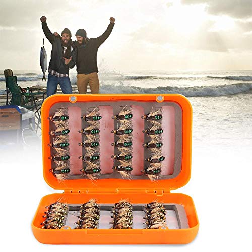 Demeras Esche da Pesca a Mosca Ami Pesca a Mosca Mosche secche 40 Pezzi Esche da Trota Ami da Pesca a Mosca a Secco Kit Esche con Custodia(Verde Dorato Misto)