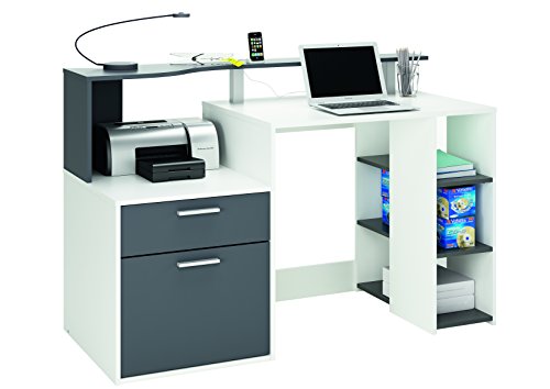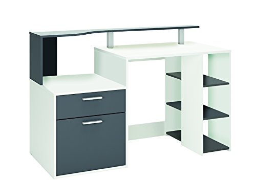 Demeyere Mcbeal Scrivania, Legno, White/Graphite Grey, 139.8 x 55.1 x 91H cm