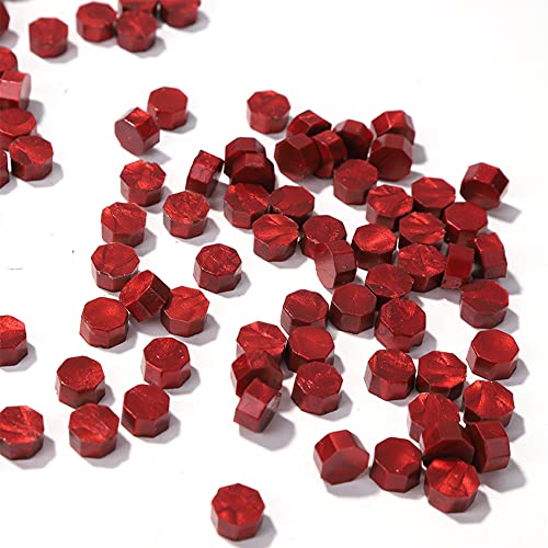 Demiawaking 100pcs Ceralacca per Sigilli Ottagono Ceralacca per Timbri Perline di Cera per Timbro Vintage Ceralacca Sigillo per Buste Lettere Biglietti Matrimonio Natale (Rosso fuoco)