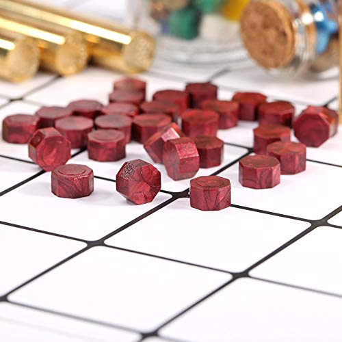 Demiawaking 100pcs Ceralacca per Sigilli per Timbro Perle di Cera per Sigilli Ottagonale Vintage Ceralacca Sigillo per Buste Lettere Carta di Invito Matrimonio Natale Artigianato Fai Da Te (Rosso)
