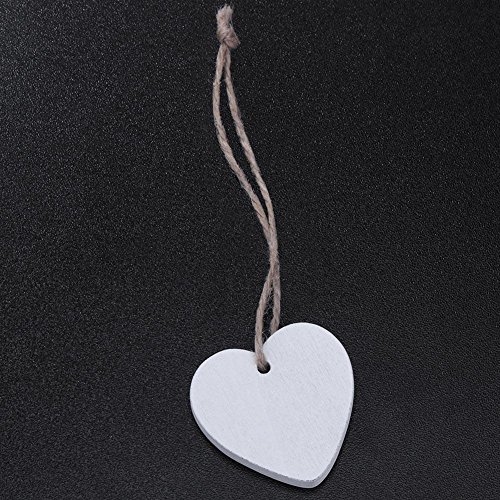 Demiawaking 10PCS abbellimenti cuore in legno 40 mm Craft forme da appendere fai da te ornamenti ciondolo con spago naturale per party camera da letto casa decorazione White