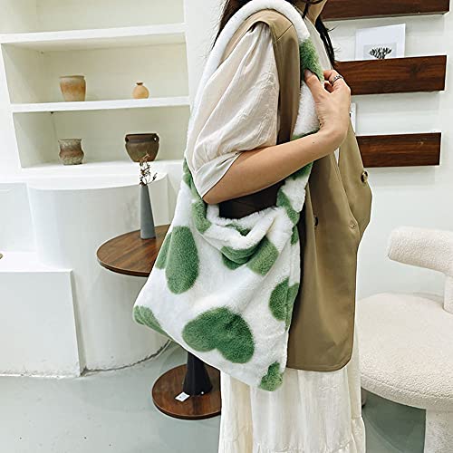 Demiawaking Borsa Pelliccia Sintetica Donna Stampa Cuore Borsa a Tracolla in Peluche Moda Invernale Borsa Tote Donna di Grande Capacità Autunno Inverno (Cuore verde)