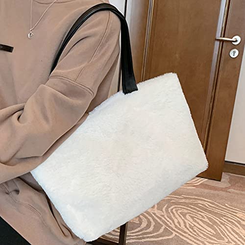 Demiawaking Borsa Pelliccia Sintetica Donna Borsa a Tracolla in Peluche Borsa Tote Donna di Grande Capacità Borsa da Shopping Autunno Inverno (Bianco)