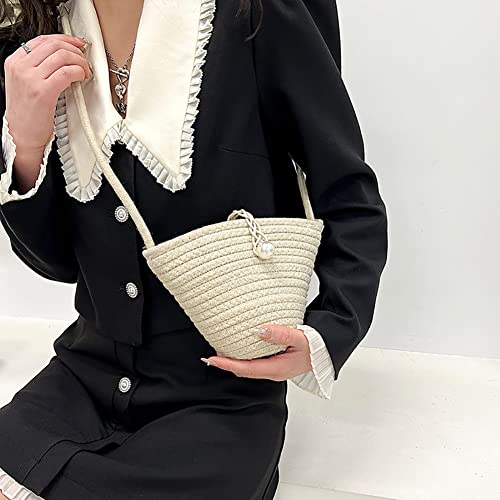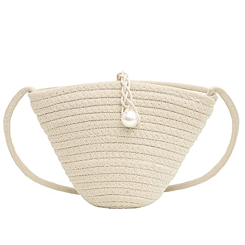 Demiawaking Borse in Paglia Intrecciata Vintage Borsa a Tracolla in Paglia con Fibbia di Perle Borsa da Spiaggia Paglia Estiva Piccola Borsa Paglia Mare Donna Moda (Beige)