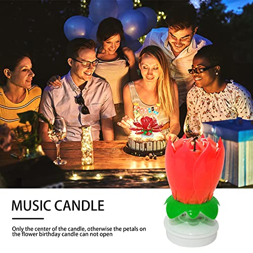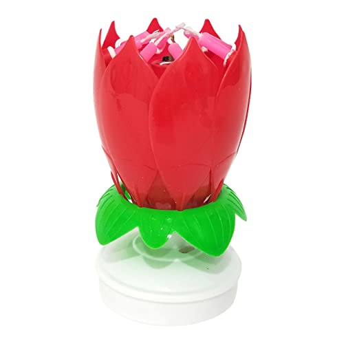 Demiawaking Candela a Forma di Fiore Musicale Candele per Torta Particolari Candela Musicale Fiore di Loto Rotante Topper per Torta Decorazione per Torta di Compleanno (Rosso)