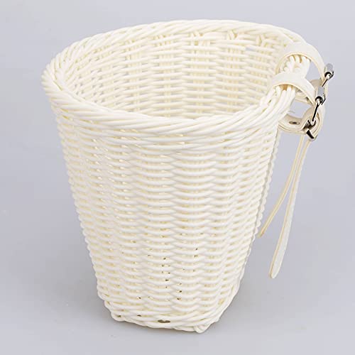 Demiawaking Cestino per Bici Bambini Cestino per Bicicletta in Finto Vimini Intrecciato a Mano Cestino da Bicicletta Vintage con Cinghie in Pelle Cestino Portapacchi Anteriore Bici (Bianco)