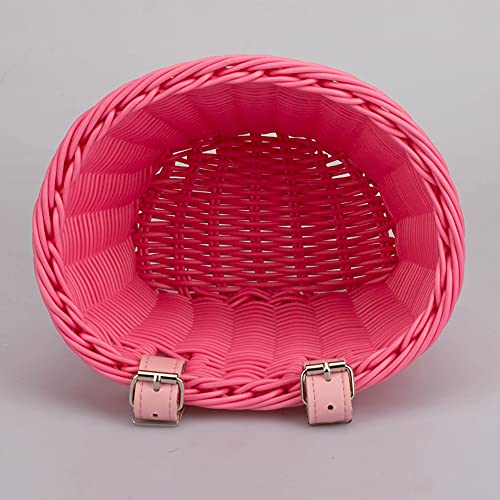 Demiawaking Cestino per Bicicletta in Finto Vimini Intrecciato a Mano Cestino Anteriore per Bicicletta Cestino da Bicicletta Vintage con Cinghie in Pelle Cestino Portapacchi Anteriore Bici (Rosa)