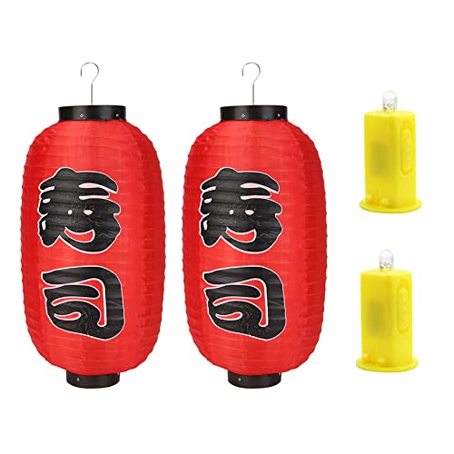 Demiawaking Lanterne Giapponese con LED a Batteria Lanterna Decorativa da Appendere in Tessuto Impermeabile Lanterne Rosse Giapponesi Decorazioni per Ristorante Bar Negozi (Sushi)