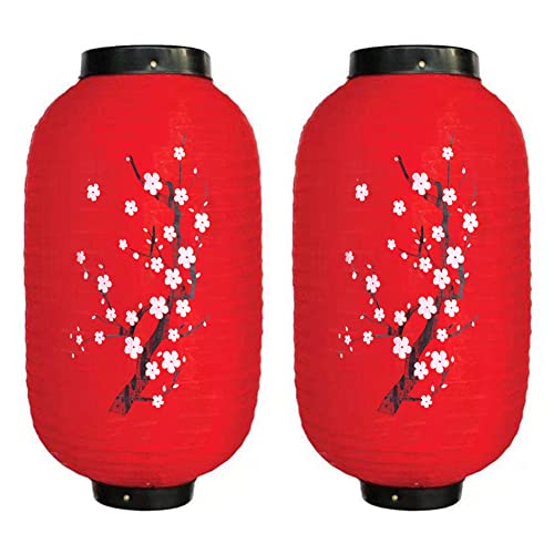 Demiawaking 2 Pezzi Lanterna Giapponese con Stampa Sakura Lanterna Decorativa da Appendere Lanterna Stoffa Lanterna Paralume Decorazioni per Ristorante Bar Giardino Cortile (Rosso)