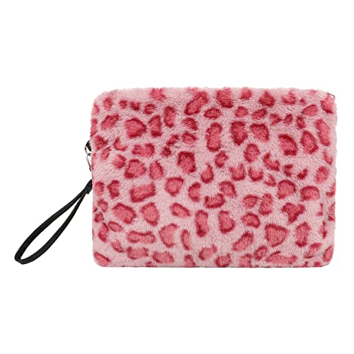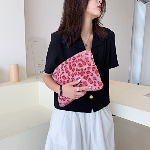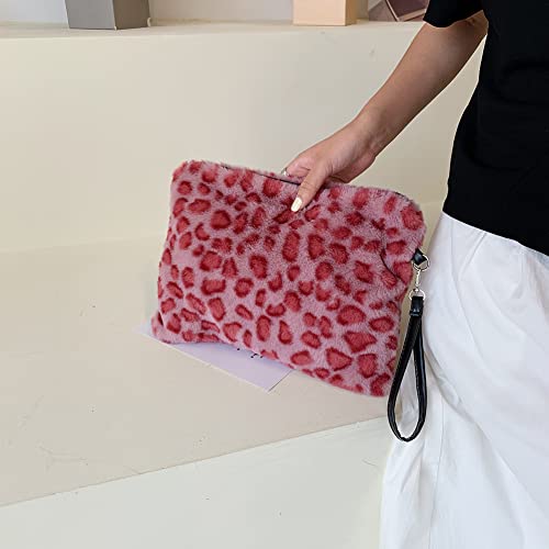 Demiawaking Pochette da Polso Donna in Peluche Stampa Leopardo Borsa a Busta Donna Elegante Borsa Pelliccia Sintetica di Grande Capacità Clutch Borsa da Giorno Donna (Leopardo rosa)