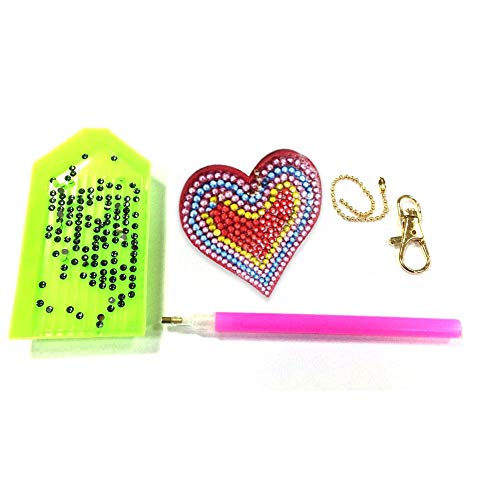 Demiawaking 5pcs Portachiavi con Strass Ciondolo Portachiavi DIY Full Drill Diamond Painting Portachiavi a Forma di Cuore Colorato per Borsa
