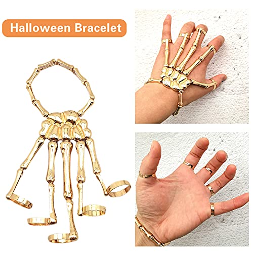 Demiawaking Scheletro Mano Anello Bracciale Scheletro Mano in Metallo Braccialetto Scheletro Mano per Uomo e Donna Costume Accessori per Halloween Carnevale (Oro)