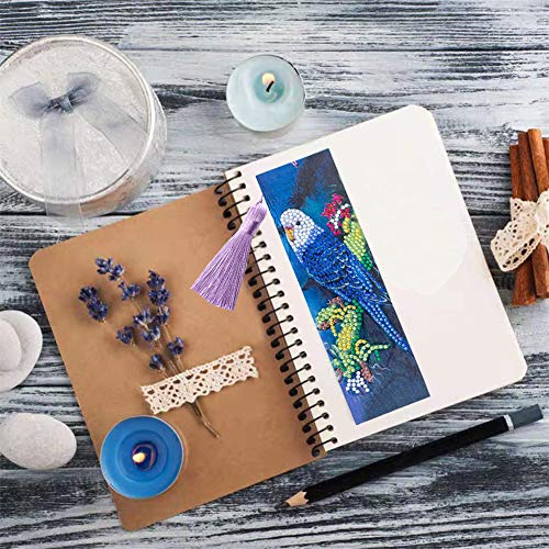 Demiawaking Segnalibro in Pelle DIY Diamond Painting Segnalibro con Nappa Pendente Fai da te Marcatore Libro per Donna Uomo Bambini Regalo Natale Compleanno Laurea Artigianato (Pappagallo)