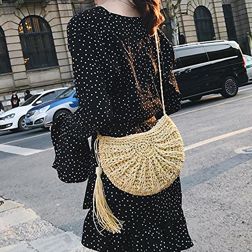 DemiawakingIT Borsa a Tracolla in Paglia Intrecciata Borsa a Spalla Vintage con Nappe Borsa da Spiaggia Paglia Estiva Borsa Crossbody da Donna (Beige)
