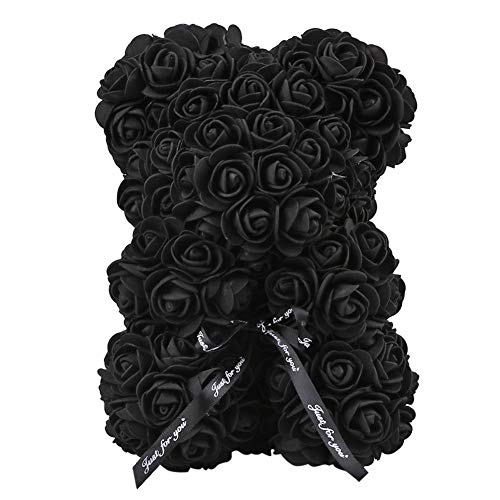 DemiawakingUK Orso Rose Orso di Rose Artificiali Orsetto di Rose Orso Rose Finte in Schiuma Bambola Regalo per Compleanno San Valentin Anniversario (Nero, 25cm)