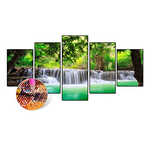 DemiawakingUK Cascata e Albero Verde 5D DIY Diamond Painting Kit Completo Paesaggi Diamond Painting 5 Immagini Combinazione Kit Pittura Diamante 5D Fai da Te Pittura Mosaico Decorazione 103x45cm