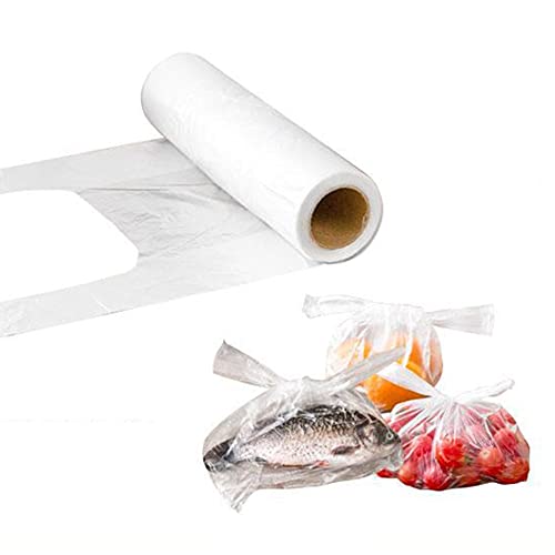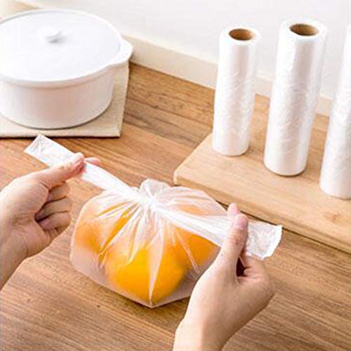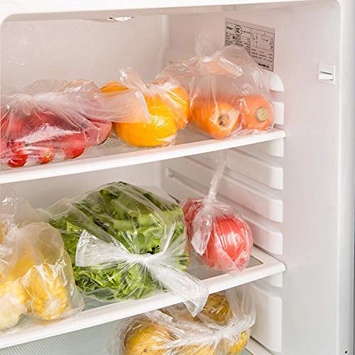 DemiawakingUK 100 Pezzi Sacchetti per Alimenti Trasparenti con Maniglia Rotolo Sacchetti per Alimenti in PE Contenitore per Alimenti Frigo Sacchetti per Frigo e Freezer (M: 38x20cm)