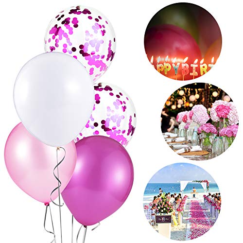 Demine 40 Pezzi 30cm Palloncini per Feste Palloncini con Coriandoli Rosa e Elio Palloncini Lattice di Compleanno Matrimonio Celebrazione Laurea Decorazione Ragazzo e Ragazze con 3 Volume Nastri