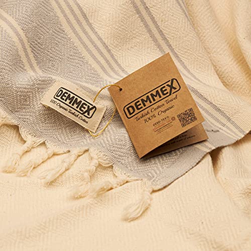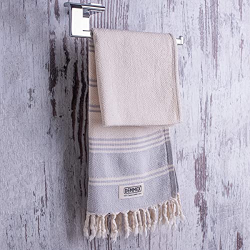 DEMMEX Set di 2 asciugamani decorativi da bagno 100% cotone turco biologico prelavato per mani, viso, capelli, palestra, yoga, tè, panno, cucina, bagno, 40 x 90 cm (bianco-grigio)