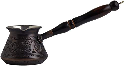 DEMMEX Caffettiera in rame greco arabo turco, spessore 2 mm, con incisione sul piano cottura Cezve Ibrik Briki con manico in legno e cucchiaio, per 3 persone (rame anticato)
