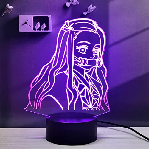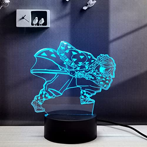 2 in 1, Demon Slayer,Kamado Nezuko,Agatsuma Zenitsu, lampada Anime LED 3D illusion, telecomando RGB a 16 colori, luce notturna dsek per bambini