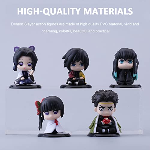 Demon Slayer Cake Topper Hilloly 5 pezzi Anime Demon Slayer Mini Figurine Giocattoli Decorazione Torta Anime Q Versione Collezione Action Figure Decorazioni per Bambini Festa Compleanno (C)