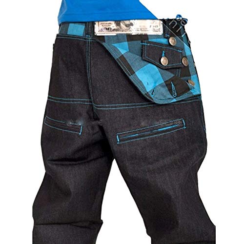 Denaro sporco Blu Check Urban Denim Hip Hop G Designer Time is Money Jeans Pantaloni BluS. 32W x 34L