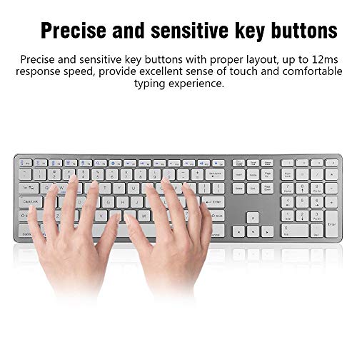 【Migliora il Gusto del Tuo Desktop】: La bella cover argentata, la rende elegante e piena di stile aziendale, adatta a casa, ufficio, affari, ecc. Leggera e ultrasottile, la rende facile da riporre nella borsa, facile da usare sempre e ovunque, ti offre una comoda esperienza di digitazione.