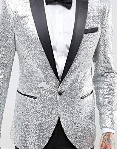Judi Dench Giacca da Uomo con Un Bottone 1 Pezzi e Brillantini con Paillettes Glitterati, Taglia S, Argento