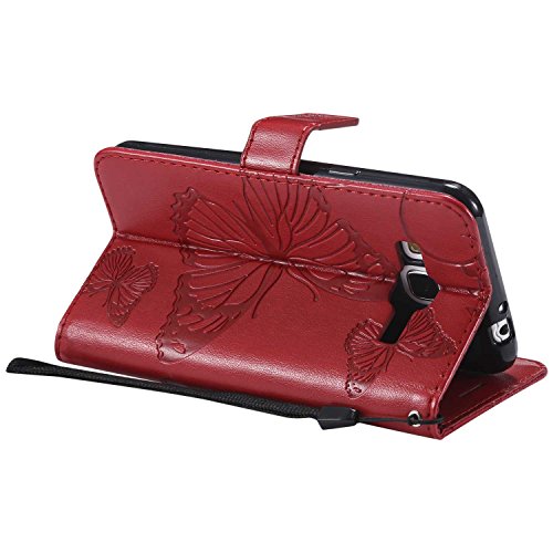 DENDICO Cover Galaxy J3 2016, Pelle Portafoglio Custodia per Samsung Galaxy J3 2016 Custodia a Libro con Funzione di appoggio e Porta Carte di cRossoito - Rosso