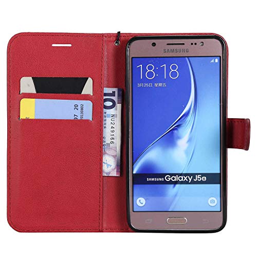 DENDICO Cover Galaxy J5 2016, Premium Portafoglio PU Custodia in Pelle, Flip Libro TPU Bumper Caso per Samsung Galaxy J5 2016 - Rosso