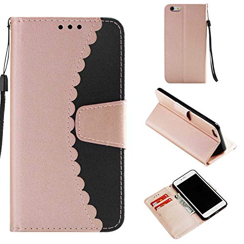 DENDICO Cover iPhone 6 / 6S, Cuoio Custodia, Premium Portafoglio Caso in Pelle con e Funzione Supporto, Libro Magnetica Protettiva Cuoio per Apple iPhone 6 / 6S (4.6'') - Oro Rosa + Nero
