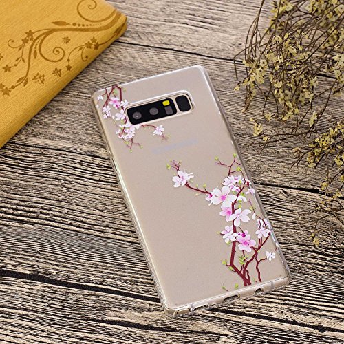 DENDICO Galaxy Note 8 Custodia ultra sottile in TPU per Samsung Galaxy Note 8, trasparente trasparente per Galaxy Note 8, assorbimento degli urti, fiori di prugna