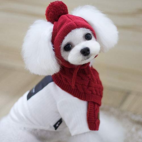 DENGHENG Cappello di Cane Stile Coreano Sciarpa Set Pet Lana Decorazione Abbigliamento Caldo Inverno Forniture