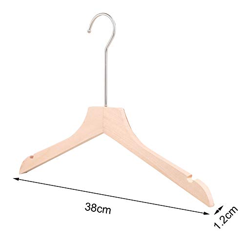 DENGS grucce appendiabiti con bordi antiscivolo, in legno, Appendini Salvaspazio, da Armadio, per Camicie, Vestiti, Giacche, Colore Naturale/Pack of 10/38 centimetri